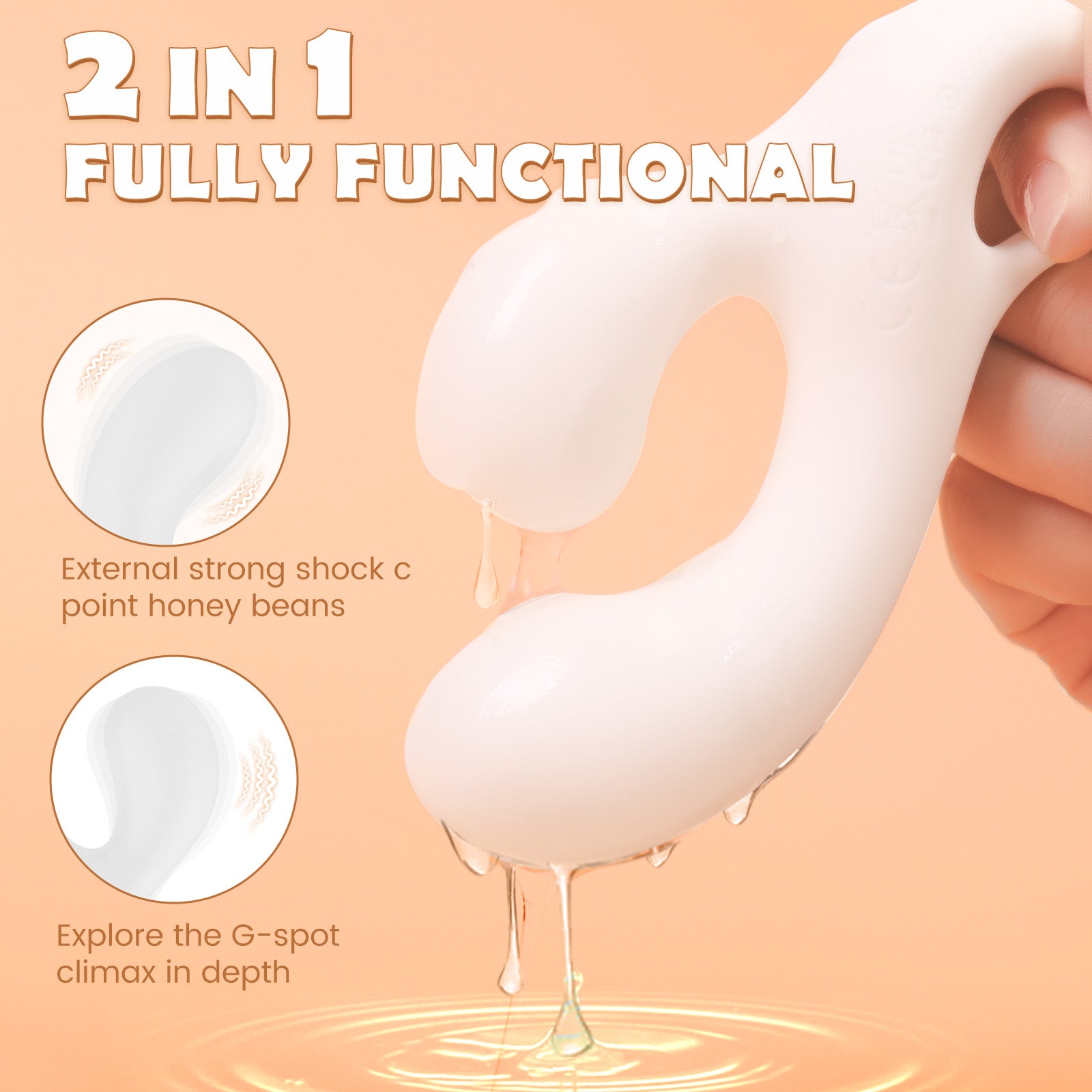 Key Benefit & Feature: Double motors, powerful vibrations. Elastic flexibility. 2 in 1 fully functional.